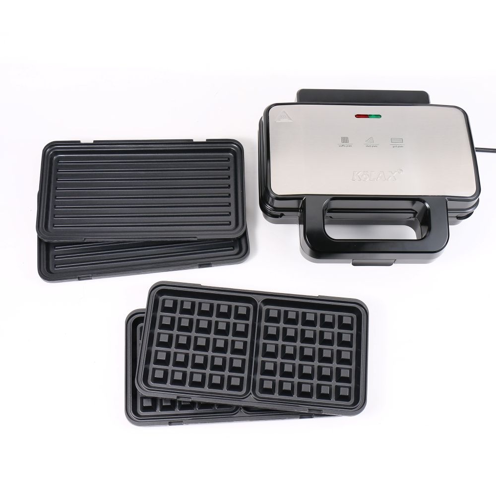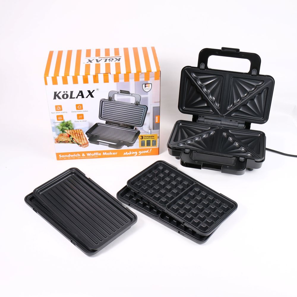 KOLAX 3 in 1 Sandwich Maker Indoor Waffle Maker Irons with 6 Slice Non-Stick Removable Plates for Easy Cleanup,Perfect for Cooking Grilled Cheese,Tuna Melts,Burgers and Steaks,900W Black/Silver