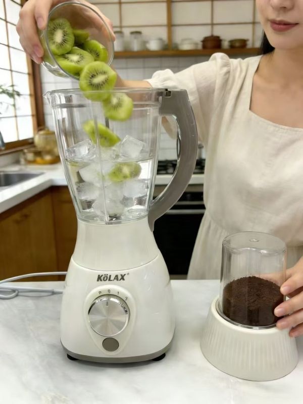 Powerful 1500W Motor: The KOLAX Kitchen Blender is equipped with a robust 500W motor, providing efficient blending performance for all your culinary needs.Small grinder cup can be used for grinding all kinds of beans perfectly. Whether you're making smoothies, sauces, or soups, this blender delivers consistent power for smooth, even blending results.